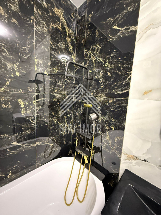 Baia este dotata cu obiecte sanitare de top. Mobilierul este realizat la comanda, adaptat conform spatiului astfel incat sa ofere functionalitate si un plus de confort.