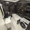 Baie contemporana, finisata cu materiale premium, dotata cu cada si iluminare calda. Spatiu practic, dar in acelasi timp elegant si relaxant.