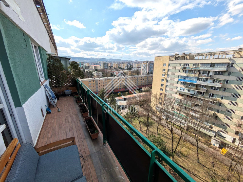 Apartamentul este poziționat la etajul 10 din 10, într-un bloc construit în 1980, izolat termic și cu acoperiș refăcut, oferind atât confort termic, cât și o priveliște deschisă asupra orașului. Unul dintre principalele atuuri este balconul generos, de aproximativ 10 mp, ideal pentru relaxare.