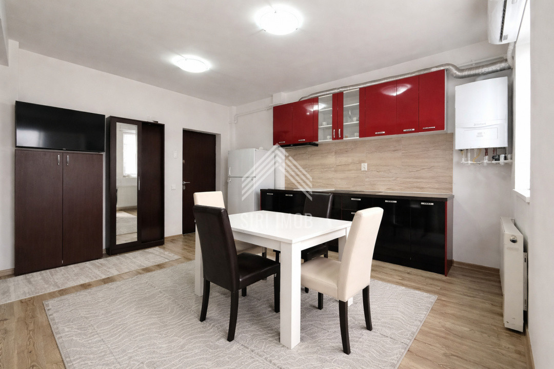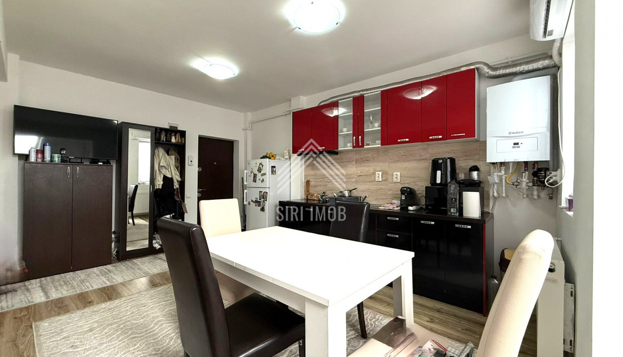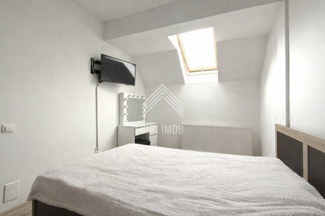 Va propunem spre vanzare apartament cu 2 camere situat in localitatea Floresti, pe strada Eroilor 22. Imobilul semidecomandat are suprafata utila de 41mp, este format din sufragerie + bucatarie, baie, dormitor si o logie(1.80 mp)si este situat la mansarda unui imobil cu regimul de inaltime P+2+M. Proprietatea se vinde complet mobilata si utilata, dispune de centrala termica proprie, aer conditionat, geamuri termopan si usa metalica la intrare. In pretul de vanzare este inclus si un loc de parcare exterior (cu CF individual). In imediata apropiere regasim statii de autobuz, Lidl, Profi, Pepco,Penny, farmacii.
