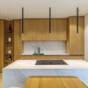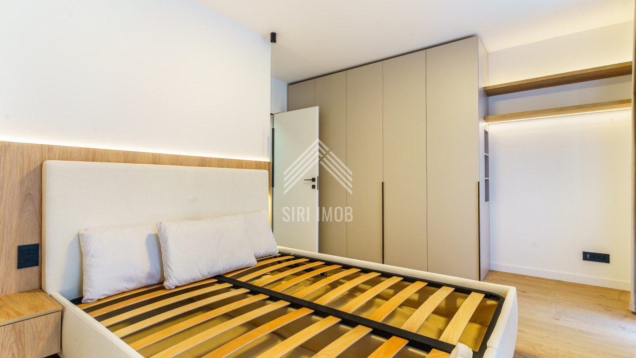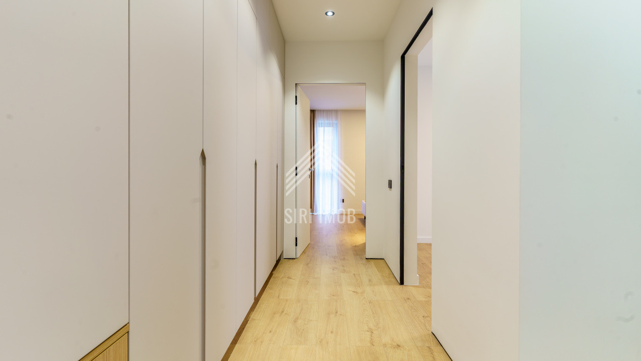 Întregul apartament a fost amenajat conform unui concept unitar, cu accent pe linii curate, cromatică neutră și materiale premium.