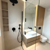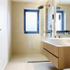 Băia principala este amenajata în stil minimalist, cu accent pe funcționalitate și durabilitate: