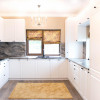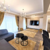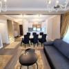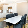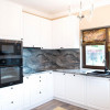 Alături, bucătăria complet echipată îmbină designul modern cu funcționalitatea: frigider, plită și cuptor electric, cuptor cu microunde, hotă și spațiu amplu pentru gătit și socializare. Este un loc care invită la dimineți liniștite și seri cu aromă de acasă.