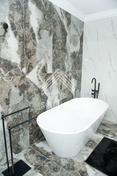 Cele două băi moderne sunt finisate cu materiale de calitate superioară, iar centrala termică proprie asigură eficiență și control total al temperaturii în întreaga casă.