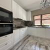 Bucătăria, complet utilată cu frigider, plită și cuptor electric, cuptor cu microunde, mașină de spălat vase și hotă, este locul în care designul modern se întâlnește cu funcționalitatea. Fiecare colț inspiră bucuria gătitului și confortul cotidian. În apropiere, o baie elegantă și un spațiu de depozitare adaugă un plus de practicitate parterului.